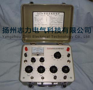QJ23a型直流電阻電橋測量范圍:1 Ω~11.110MΩ;準確度:0.1%;內(nèi)附指零儀和電池盒,用來測量其范圍內(nèi)的直流電阻。