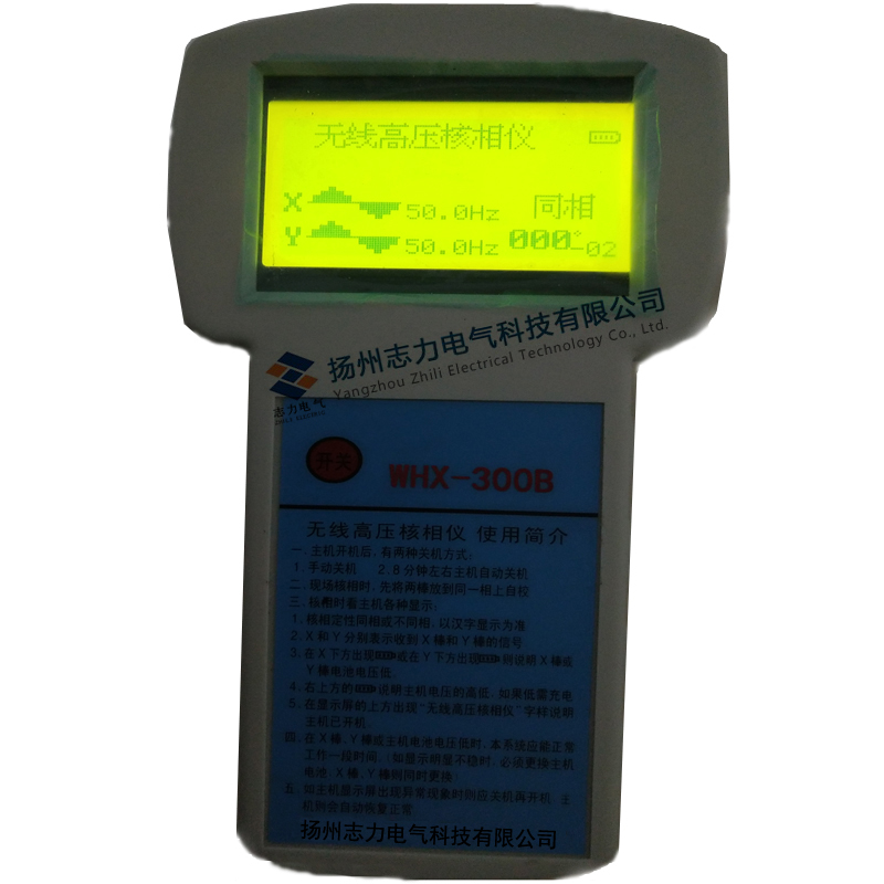 WHX-300B型高壓無線核相儀應(yīng)用于電力線路、變電所的相位校驗和相序校驗,具有核相、測相序、驗電等功能。具備很強的抗干擾性,符合( EMC )標(biāo)準(zhǔn)要求,適應(yīng)各種電磁場干擾場合。測試中被測高電壓相位信號由采集器取出,經(jīng)過處理后直接發(fā)射出去,由核相儀接收并進行相位比較,對核相后的結(jié)果定位,本產(chǎn)品安全可靠、性能穩(wěn)定、操作簡便是一種理想的核相儀器。