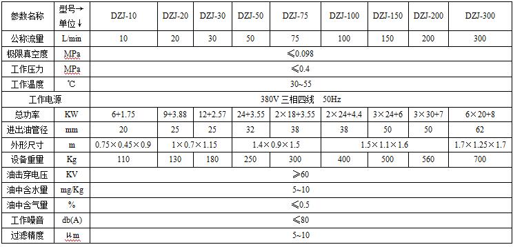 三、DZJ系列多功能真空濾油機技術(shù)標準